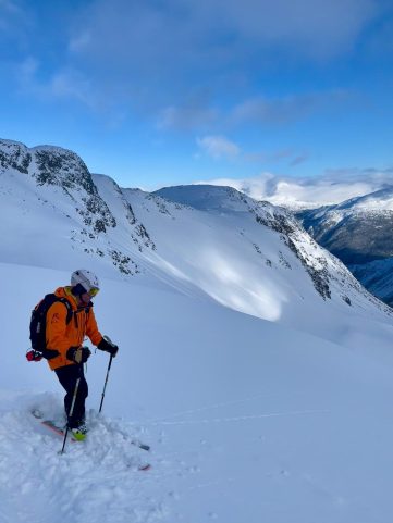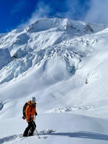 Als Chef des Heliskiing-Bereichs setzt auch Ken auf starke Frauen: Fannie gehört fix zum Guiding Team, genauso wie Kens Frau Lara, die bislang noch als Tail Guide arbeitet, in 2026 aber ihre Prüfung als volllizensierte Skibergführerin ablegen will. „Gemischte Guiding-Teams treffen bessere Entscheidungen“, betont Ken, der mit Peter Wainwright einen hervorragenden Stellvertreter im Guiding-Team hat. Pete und Ken bringen zusammen viele Jahrzehnte Guiding-Erfahrung im Heliski-Business mit. Und Guide Dave machte ebenfalls einen hervorragenden Eindruck.