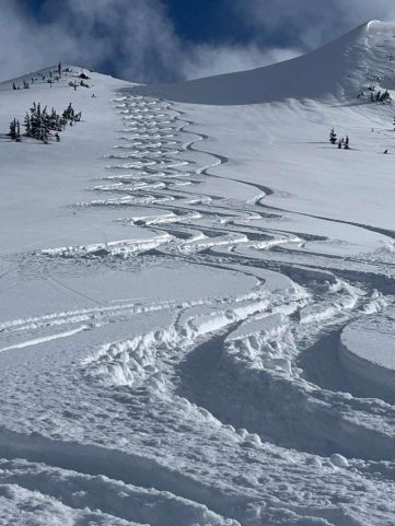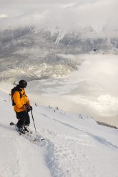 Im Vergleich zu anderen Coast Mountains-Heliskiing-Anbietern profitiert Great Bear von seiner Lage auf der Ostseite der Gebirgskette in der Nähe des Chilcotin Plateaus. „Dort haben wir weniger Niederschlag und tiefere Temperaturen“, erklärt Ken. Das ermögliche fast immer sehr gutes Skifahren im östlichen Teil des Great Bear-Areals. Die sogenannten „Schlechtwetter-Runs“ sind nur wenige Flugminuten entfernt, was bei schnell wechselnden Wetterverhältnissen ideal ist. Aufgrund dieser Besonderheiten verzeichnet Great Bear nach eigener Statistik nur rund halb so viele Down Days wie andere Anbieter in den Coast Mountains.